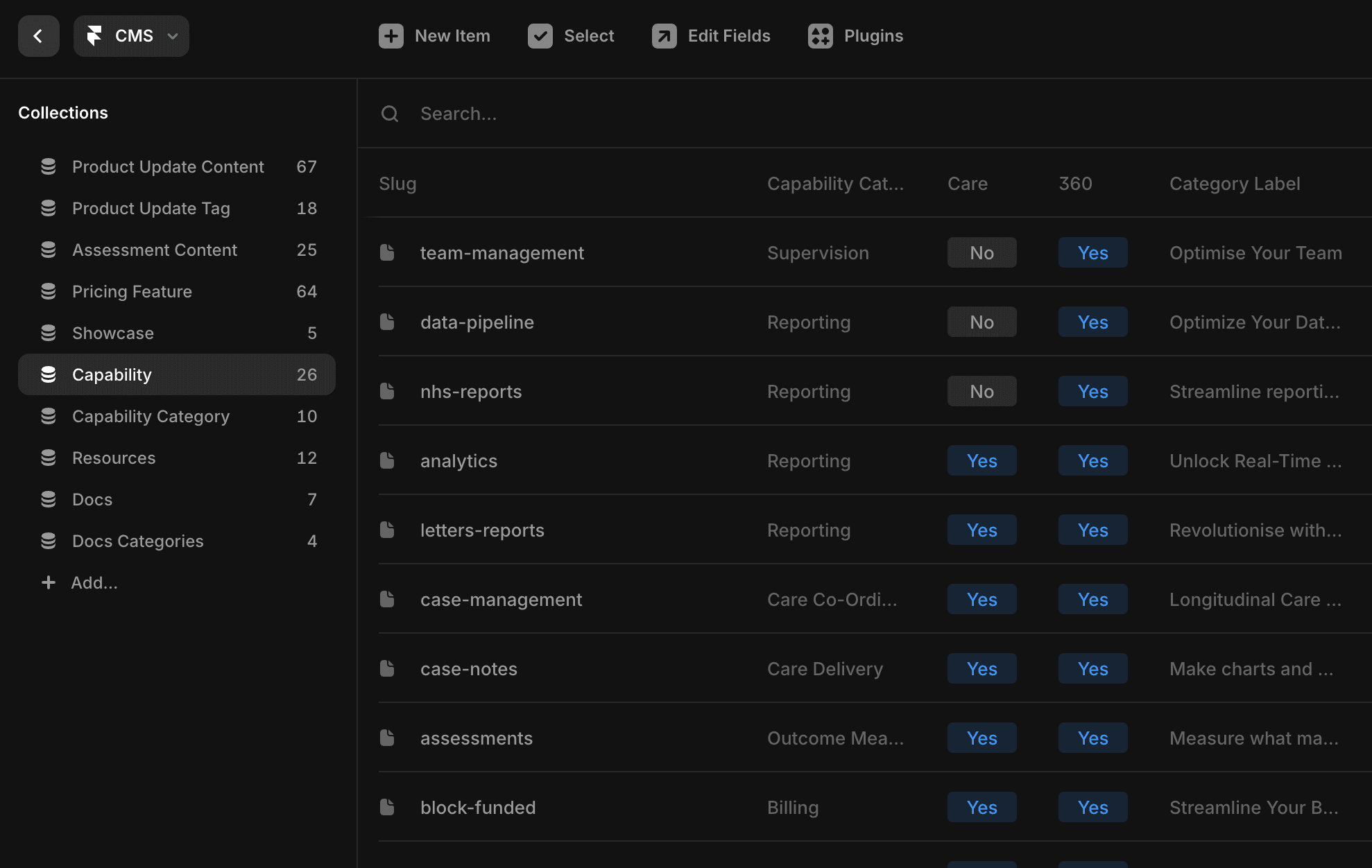 Used CMS collections in Framer for Capabilities and Product Update pages, enabling future content updates without design changes.