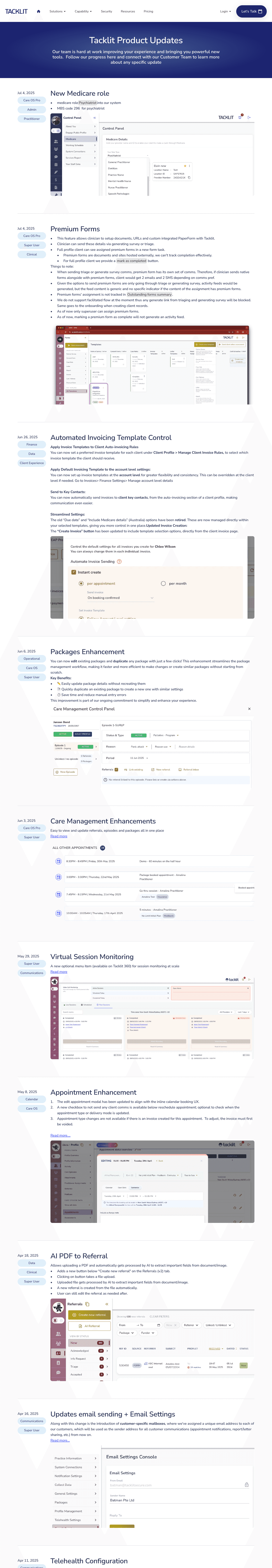 Product Update Page: A changelog-style section highlighting recent feature releases and improvements, increasing user trust and showing that Tacklit is actively evolving based on user needs and feedback.
